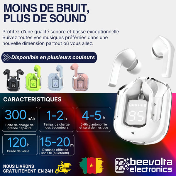 🎧 Écouteurs Bluetooth Sans Fil BT30 TWS 🔥 Son Clair & Design Transparent