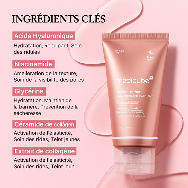 📌 Données issues du rapport d’essai clinique sur le Medicube Collagen Night Wrapping Mask. Les résultats peuvent varier d’une personne à l’autre.